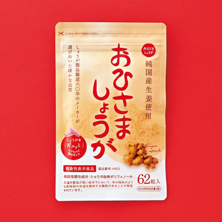 1.高知県産土佐一しょうが使用。ショウガ由来のポリフェノールが末端の体温を維持。カプセルタイプで飲みやすさも◎。 62粒31日分 ¥1,980(遠藤食品)