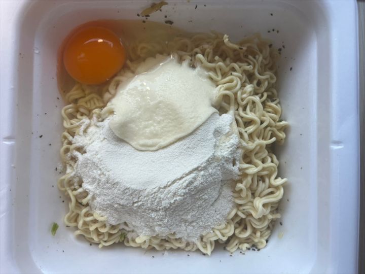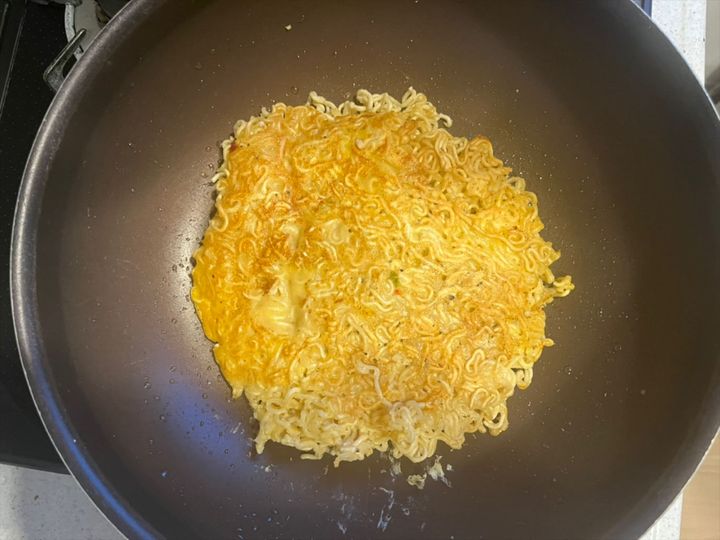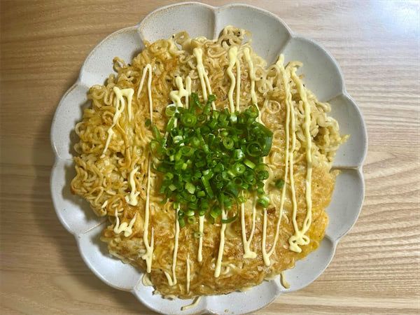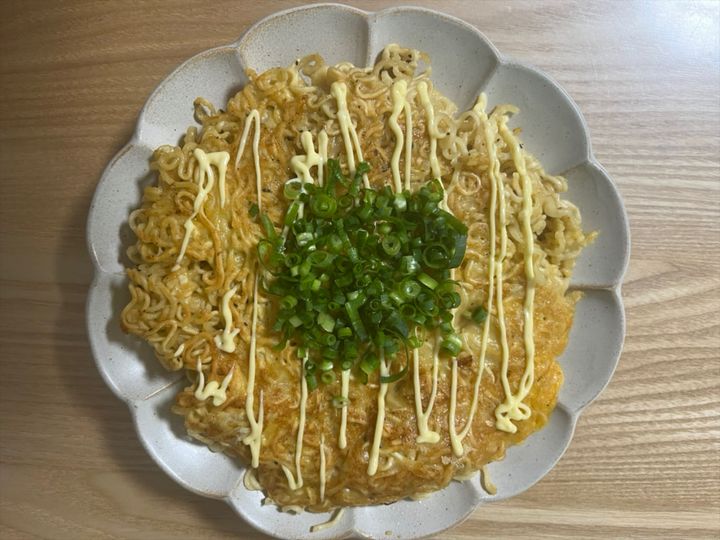 3. 【カップ焼きそばが生地に!?】「ごつ盛り塩焼きそば」で“お好み焼き風”作ろう!外はカリッと中もっちり♡