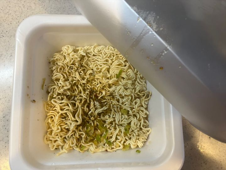 いつものカップ焼きそばを作る感覚で、中の線まで熱湯を入れてしまうと多いので気をつけましょう。