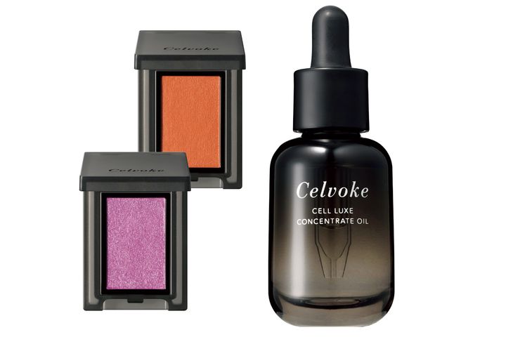 (左上)ヴァティック アイズ S 02 Cheddar Melt(左下)同 05 Soaked Pansy 各¥2,640(右)導入オイル美容液。セルリュクス コンセントレートオイル 30ml ¥13,200(すべてセルヴォーク)