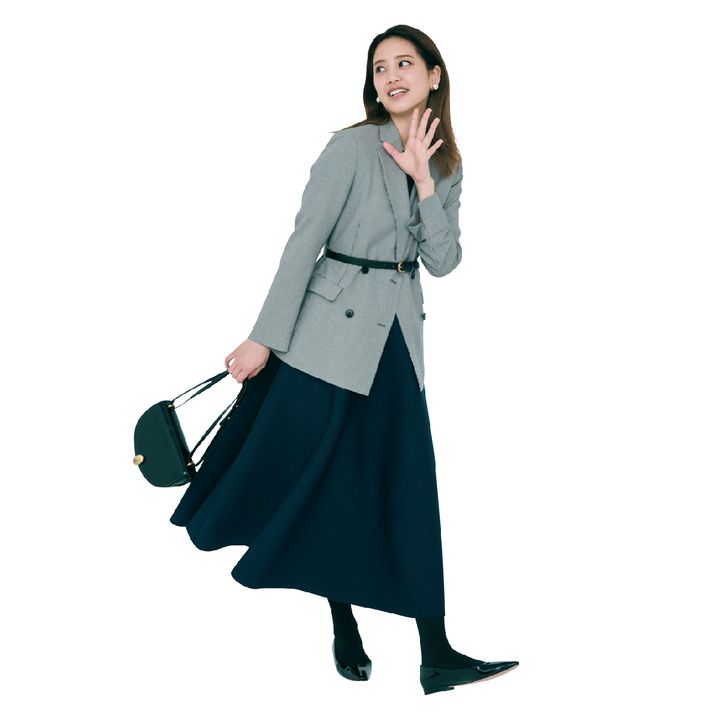 バッグ¥40,700(アーカイブエプク)パンプス¥69,300(ペリーコ/アマン)ベルト¥8,800(ロー ソウル)イヤリング¥7,560(アビステ)