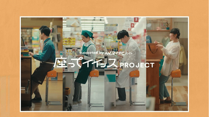 アルバイト情報サイト『マイナビバイト』では、2024年から立ち仕事にイスを導入しよう!と呼びかけるプロジェクトをスタート。