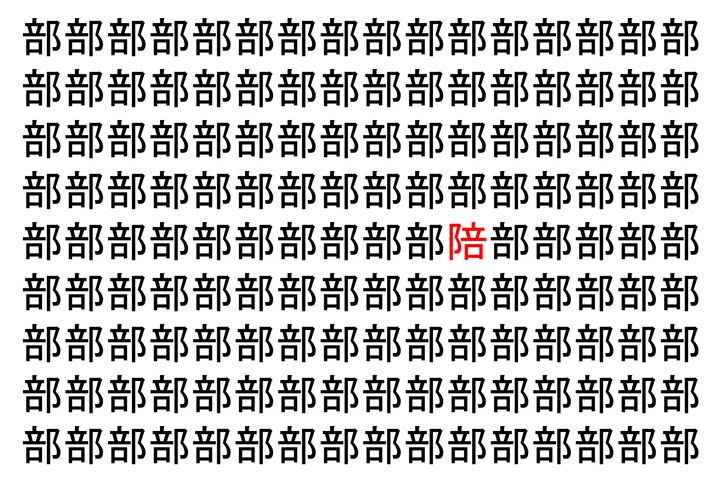 画像の中には、「部」という漢字が縦に9行、横に16個並んでいます。 全部で144個となりますが・・・、そのうち1つは「異なる漢字」となってますよ!!