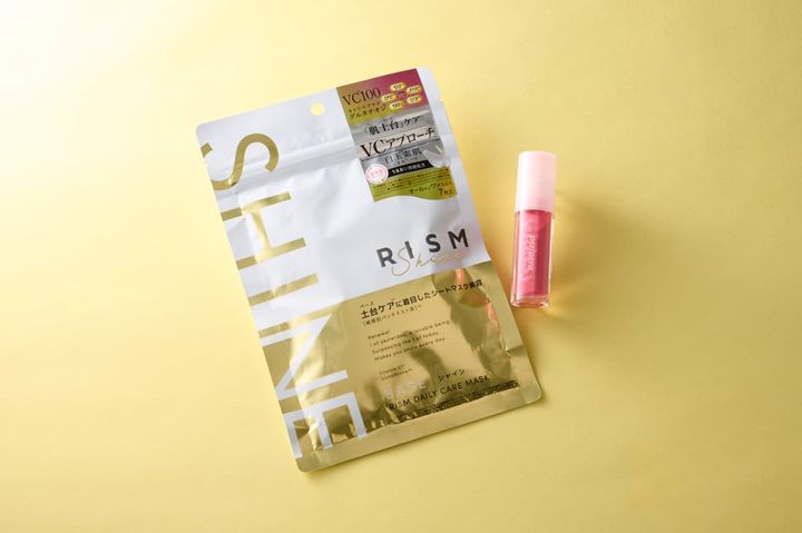 <写真右>ビタミンCをふりかけた黄色いシートに高濃縮グルタチオンC美容液をたっぷり入れ込んだ、くすみケアマスク。疲れでくすんだ肌も吹き飛ぶのでリピートしています。