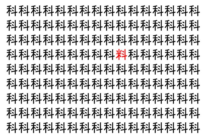 画像の中には、「科」という漢字が縦に9行、横に16個並んでいます。 全部で144個となりますが・・・、そのうち1つは「異なる漢字」となってますよ!!