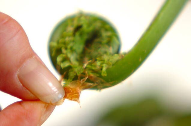 コゴミに茶色のワタがついている場合はワタを取り除き、きれいに水洗いして塩を入れた熱湯でサッと茹でたら下処理完了です。茎の部分にかたいスジがあれば取り除いてくださいね。