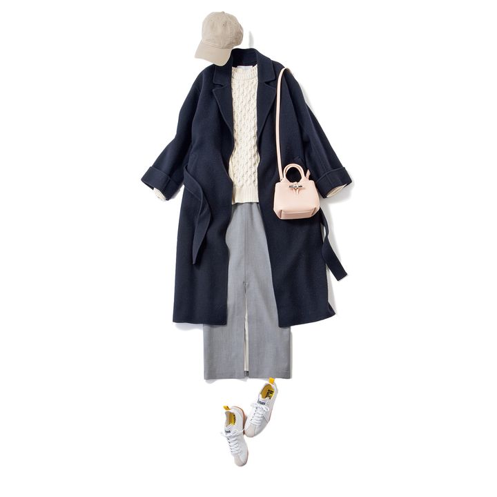 バッグ¥105,600(ロンシャン/ロンシャン・ジャパン)スニーカー¥29,700(オニツカタイガー/オニツカタイガージャパン お客様相談室)キャップ¥4,950(マイカ アンド ディール/マイカ アンド ディール 恵比寿店)