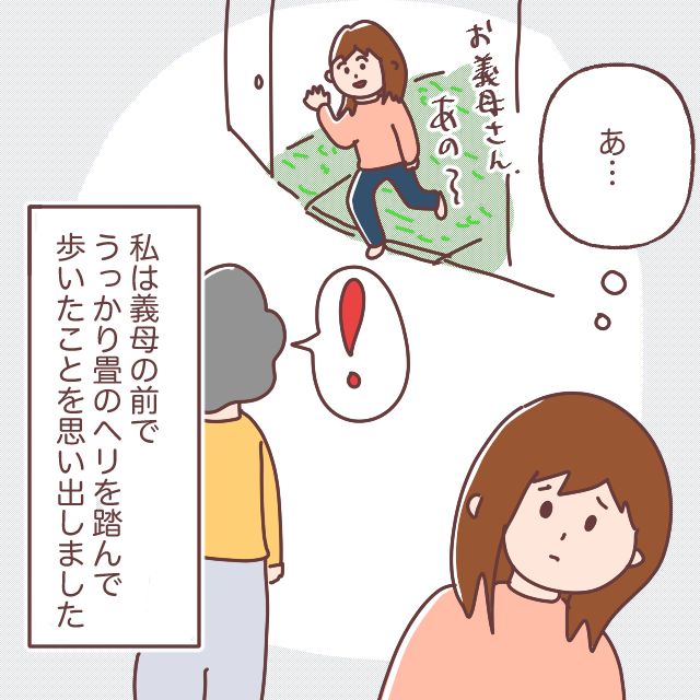 それを聞いたみほさんは、以前、義母の前でうっかり畳のヘリを踏んで歩いたことを思い出しました。