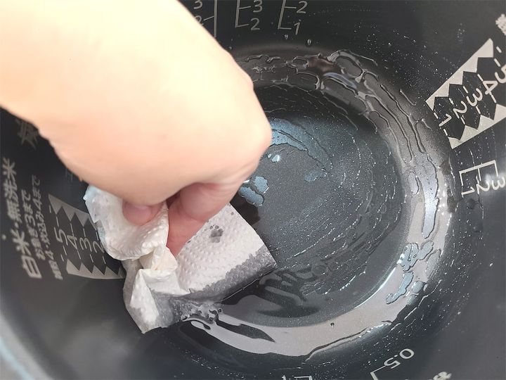 1. 炊飯器の内側に薄くサラダ油を塗っておきます。