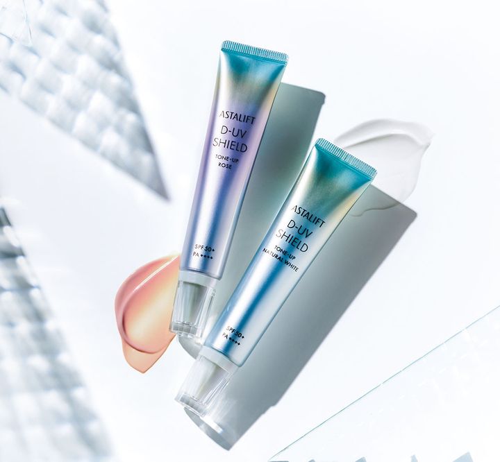 アスタリフト D-UVシールド トーンアップ SPF50+·PA++++ 30g (左)ローズ、(右)ナチュラルホワイト 各 ¥4,290/富士フイルム