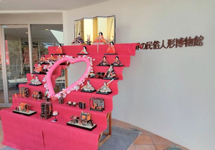 毎年この時期に三十段・千体の雛人形が飾られているのは世界の民俗人形博物館。須坂市出身で文化服装学院の名誉学長を務められた小池千枝さんが収集した民族人形が展示されています。