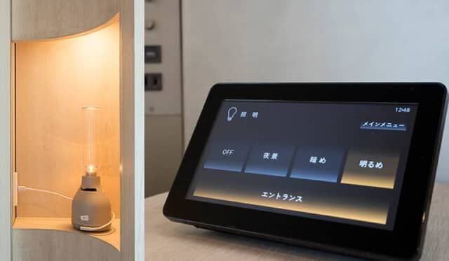 全ての客室には音楽と連動して光が揺れるソニーの「グラスサウンドスピーカー」が置かれます。有機ガラス管のクリアなサウンドと、32段階の明るさを選択可能。客室の灯りを消して、キャンドルライトの優しい灯りで夜景を眺めると、身も心も癒されます。