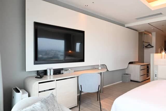 上質なホワイト系の室内にはスタイリッシュな家具が置かれ、アメニティも部屋に用意しています。