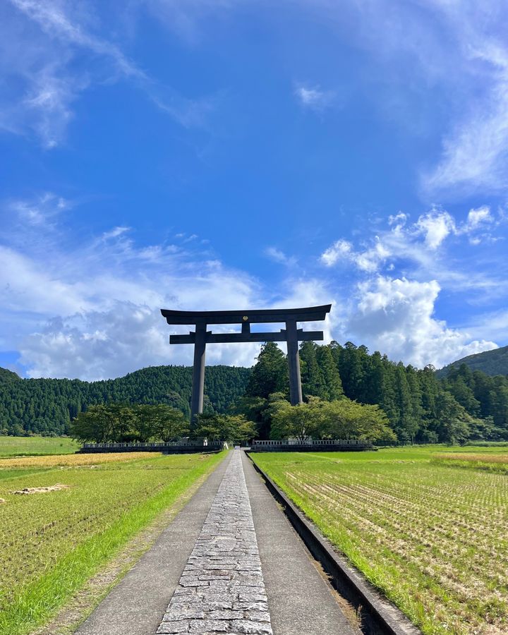 壮大な鳥居と見渡す限りの大自然は思わず走りたくなってしまうほど。