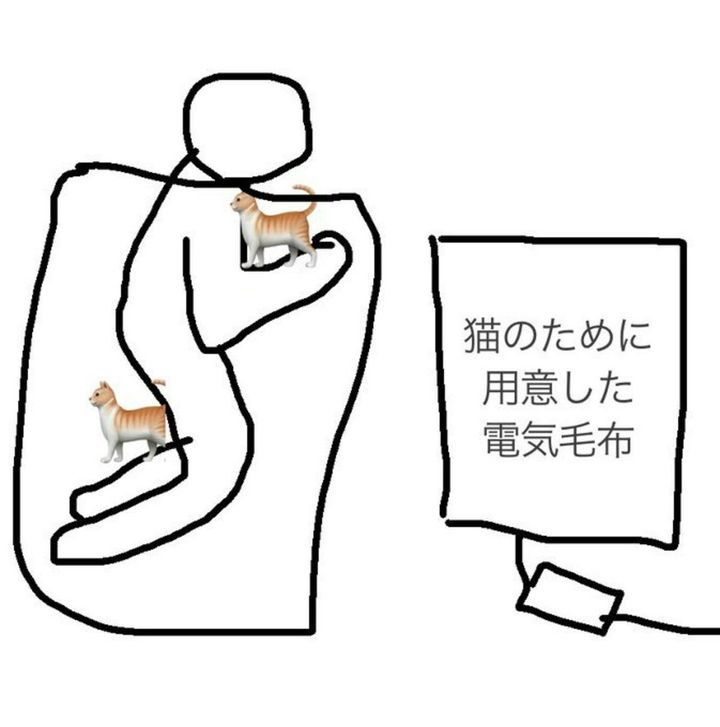 仰向けで寝た場合は、おなかの上や足の間で寝てしまいそうですね。こうなれば人間が、猫のために用意した電気毛布を使うしかないのかもしれません…。いえもりさんのことが大好きな愛猫たちに癒やされる、素晴らしい投稿でした。
