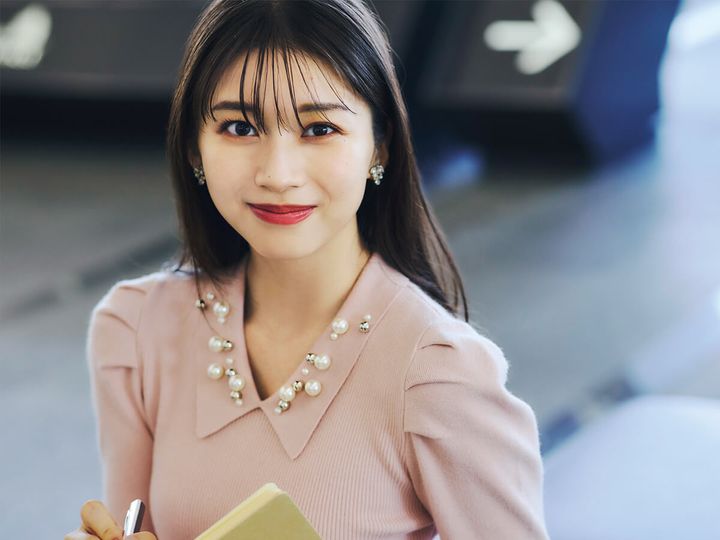 ピンクはきれいめニットで好印象を狙って【後輩OLの華やか通勤服】