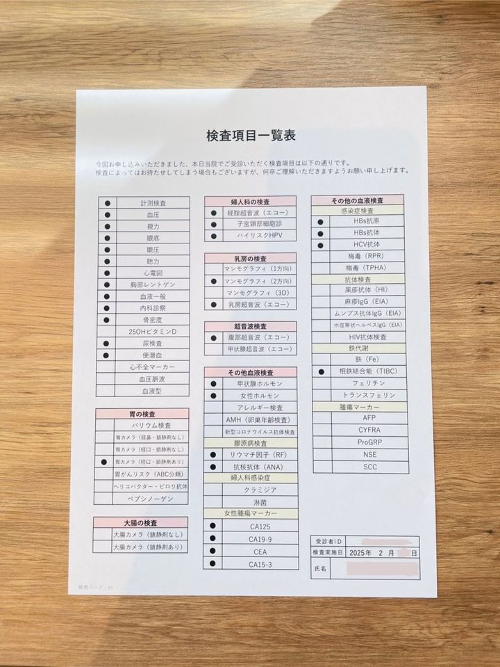受診日の2週間程前に、一般的な人間ドックと同様に自宅に案内一式(検尿等の検体キットや同意書等)が送られてきます。クレアージュは受診日の3日前までに、Webで問診を済ませておくので、当日受付で記入する必要がありません。いくつかのプランがありますが、40代半ばの私は骨密度やホルモン検査まで行える「レディースドック プレミアム」を今回セレクトしました。