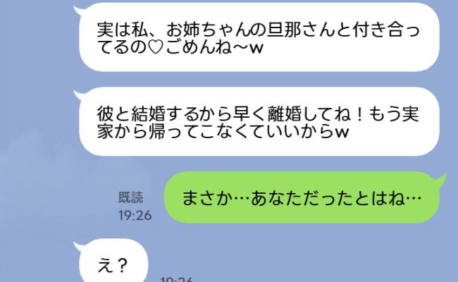 「実は私、お姉ちゃんの旦那さんと付き合ってるの♡ごめんね~w」