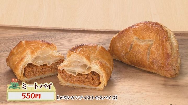 ミートソースに近い味付けをした豚と牛の合い挽き肉に、メキシカンテイストのスパイスを効かせたパイです。