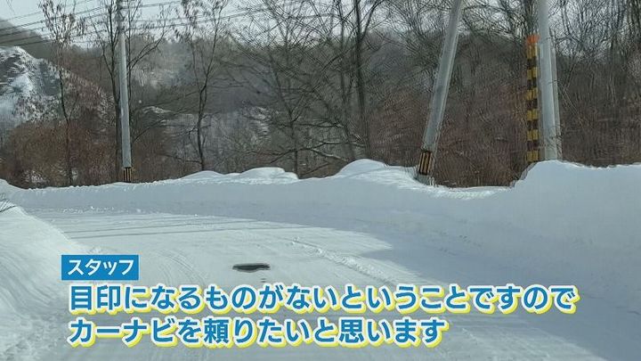 スタッフ:「今回は町の方に場所をお聞きしたんですが、なかなか目印になるものがないということですので、カーナビを頼りたいと思います」