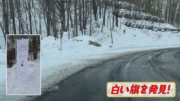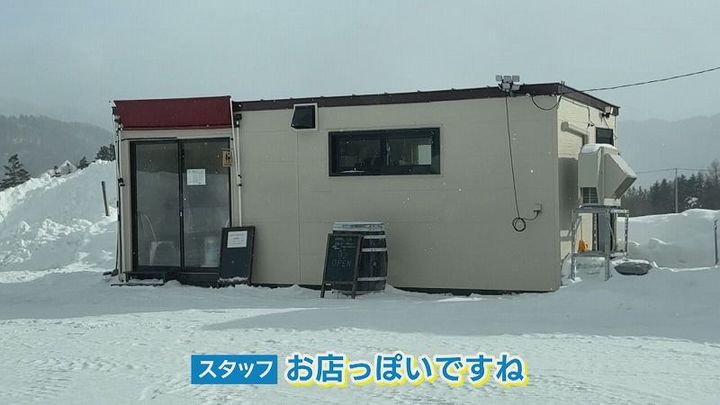 スタッフ:「カーナビの情報ですと、まもなくお店が見えてくるところまで来ていますが…見えません。あ、何か小屋みたいものが見えてきましたね」