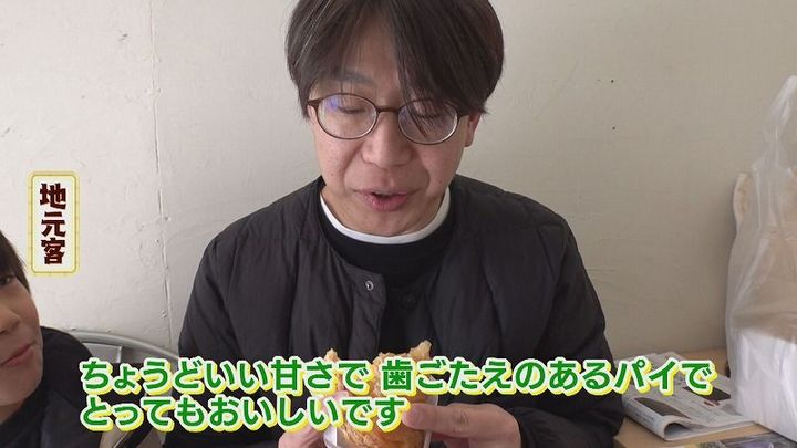 地元客:「ちょうどいい甘さで、歯ごたえのあるパイで、とってもおいしいです。何個でも食べれます。帰ってまた買ったやつ食べます」