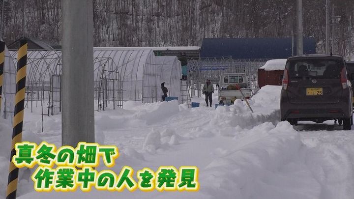 真冬の畑で何やら集まって、作業をしている人たちを発見!
