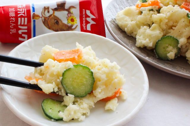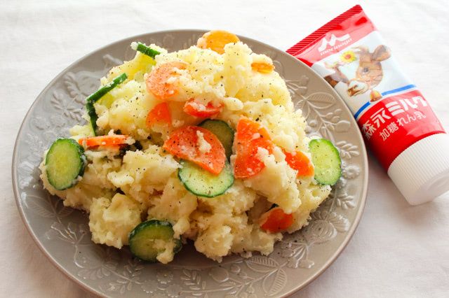 筆者はポテトサラダに、甘い調味料を加えて作ったことがなかったので、練乳を加えるの?と最初はビックリ。実際に食べてみると、さつまいものような自然な甘さで、ポテトサラダの新たなアレンジ術を知れました♪