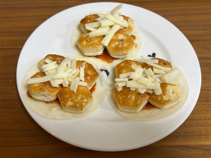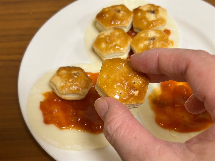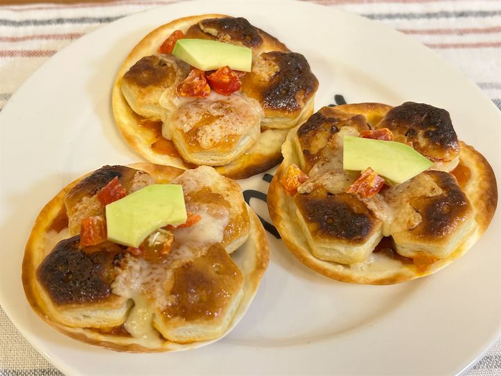 3. 【甘じょっぱ沼からキタ~】餃子の皮に「パイの実」乗せてピザ作ろう!え、ミートソースにアボカド、チーズも!?