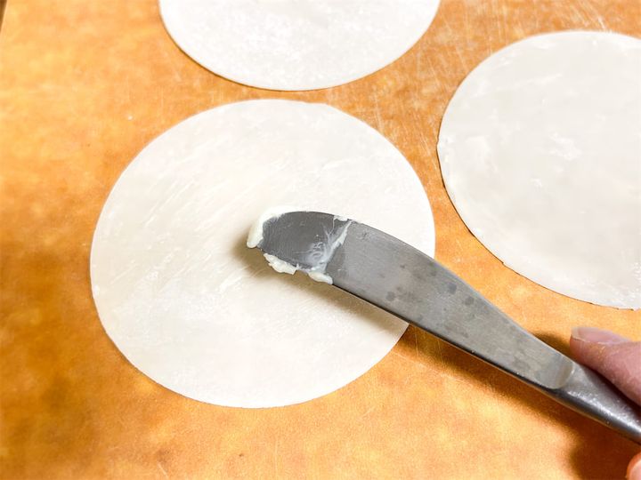 1.まずは餃子の皮にバターを塗っていきます。