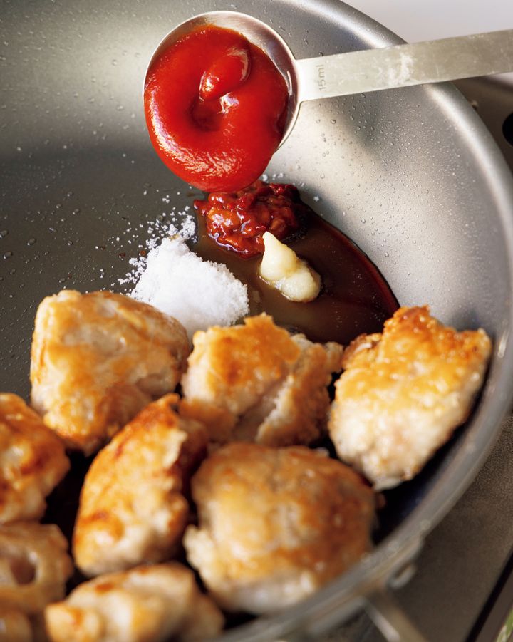 およねさんの簡単スゴ技レシピ『カリカリヤンニョムチキン』。油大さじ2&トレーを駆使