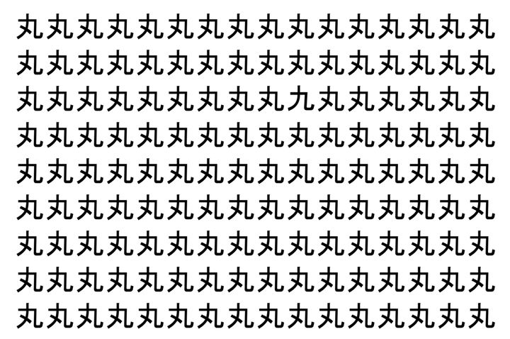 画像の中には、「丸」という漢字が縦に9行、横に16個並んでいます。 全部で144個となりますが・・・、そのうち1つは「異なる漢字」となってますよ!!