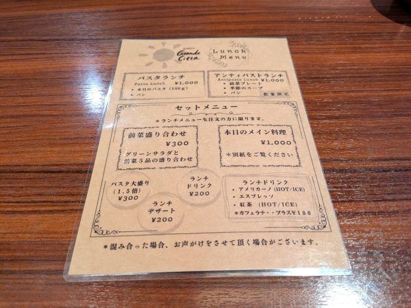 ランチメニューはわかりやすくて、パスタランチとアンティパストランチにセットメニューがあります。