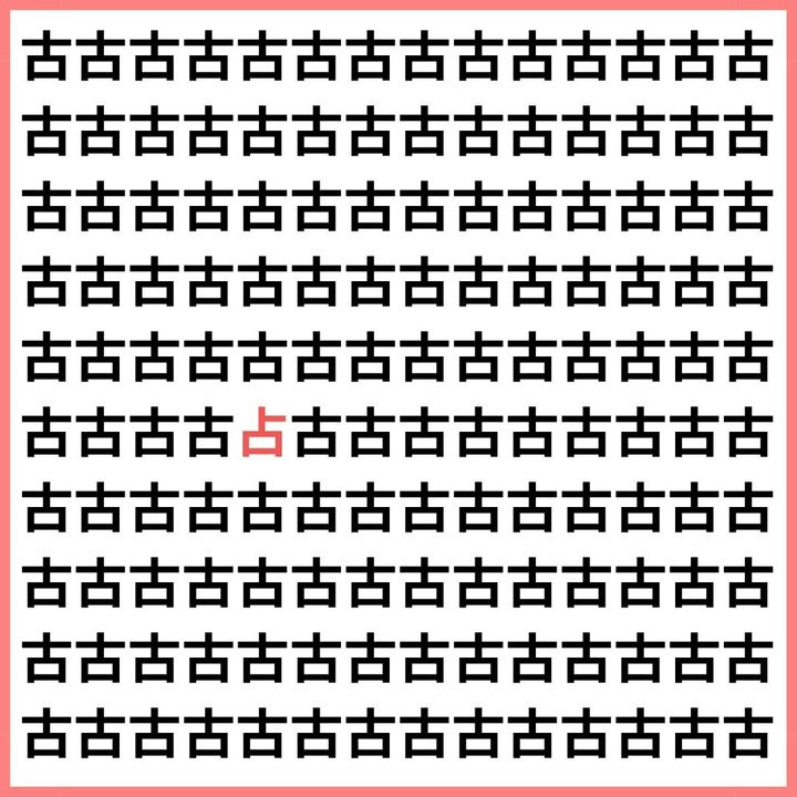 たくさんの「古」の中に、1文字だけ違う漢字が混ざっています。
