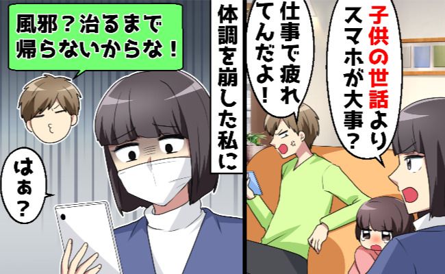 「風邪?それなら外泊するわ!」ワンオペ中に体調を崩した妻を放置。薄情な夫が帰宅すると…驚愕の光景が!?