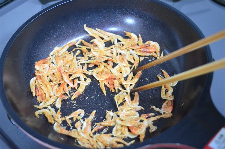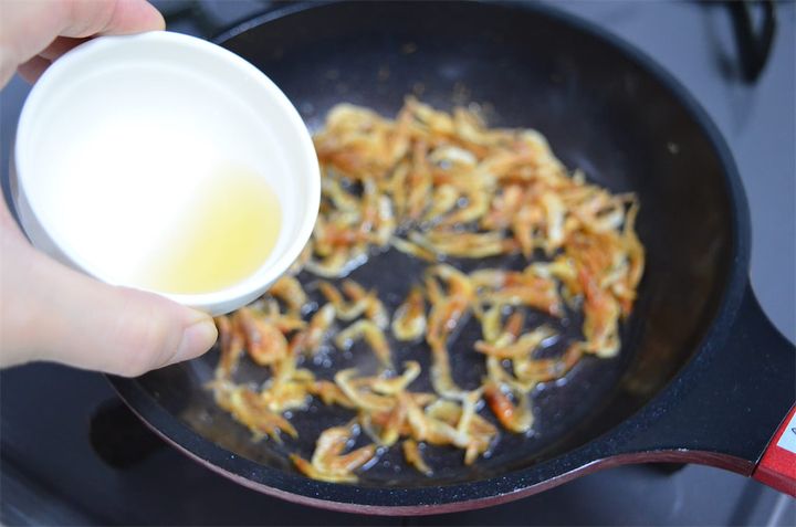 2桜えびは、フライパンでから炒りしてから、[A]を加えて水分が飛ぶまで炒める。
