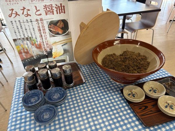 飲み放題の出汁から出る出汁がらを利用した「出汁がらふりかけ」も食べ放題です。鰹節を漬け込んだ「みなと醤油」もお試しできます。