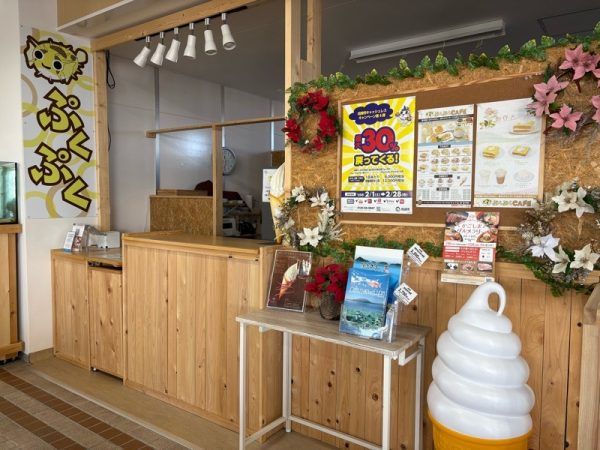 訪れた日は、残念ながらお休みだったのですが、食堂の奥には、「ぷくぷくカフェ」という名前のカフェスペースもありました。