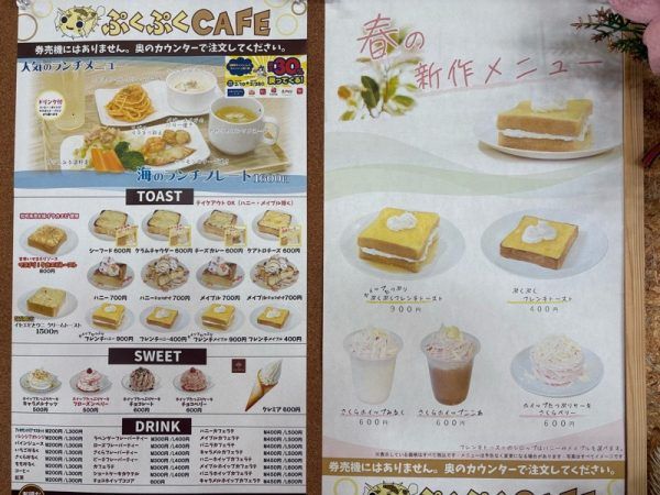 ランチプレートや、トースト、スィーツ、ドリンクなどがいただけるようでした。