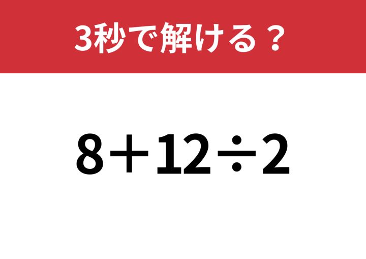 3. 油断してると間違えるかも?「8+12÷2」3秒で解ける?