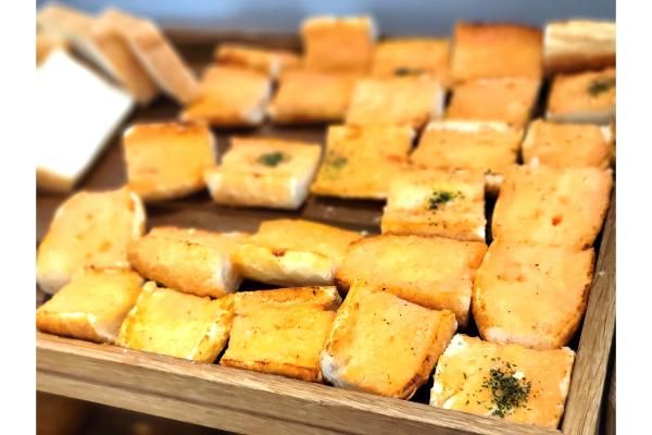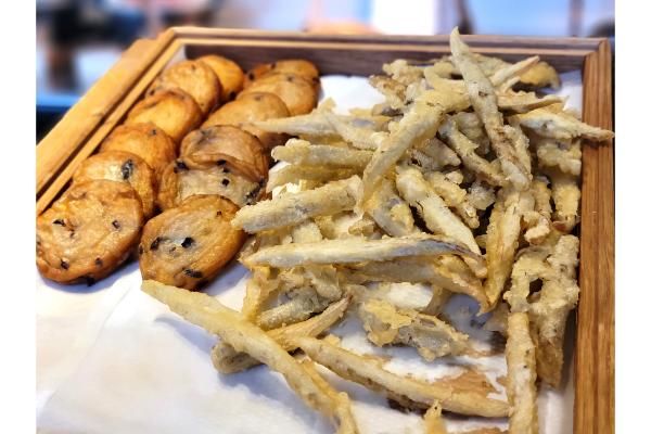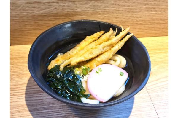 自分で麺を湯せんして、好みの具材をトッピングできる「ごぼ天うどん」や、「あご出汁のお茶漬け」「明太フランス」「がめ煮」など、福岡らしいメニューもたくさんありました。