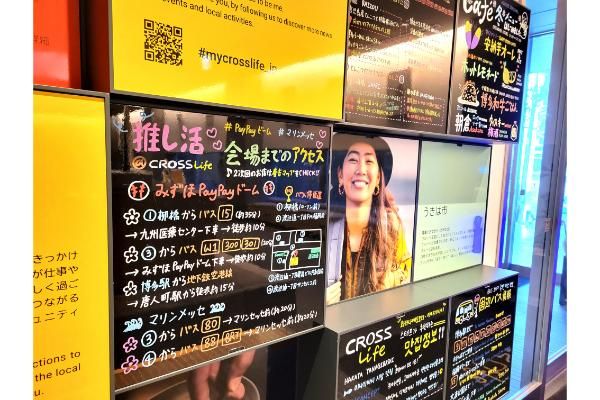 同じくエントランスにある「コネクトボード」には、ホテルや地域の最新情報が集まっています。取材時は「クロスライフクルーのオススメ!博多ラーメン選手権」やカフェ&バーの冬メニュー、推し活に役立つ会場までのアクセス方法などの情報が紹介されていました。