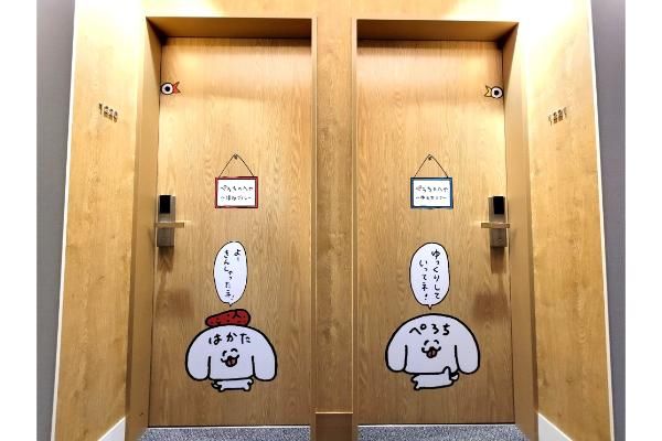 「おかえり、ぺろちのお部屋へ」コンセプトルームは、12階の2部屋。博多を代表するグルメが壁一面に描かれた「博多づくしルーム」、ぺろちらしいゆるい励ましの言葉で疲れた心を癒やしてくれる「ゆるセリフルーム」があり、それぞれ1部屋限定となっています。