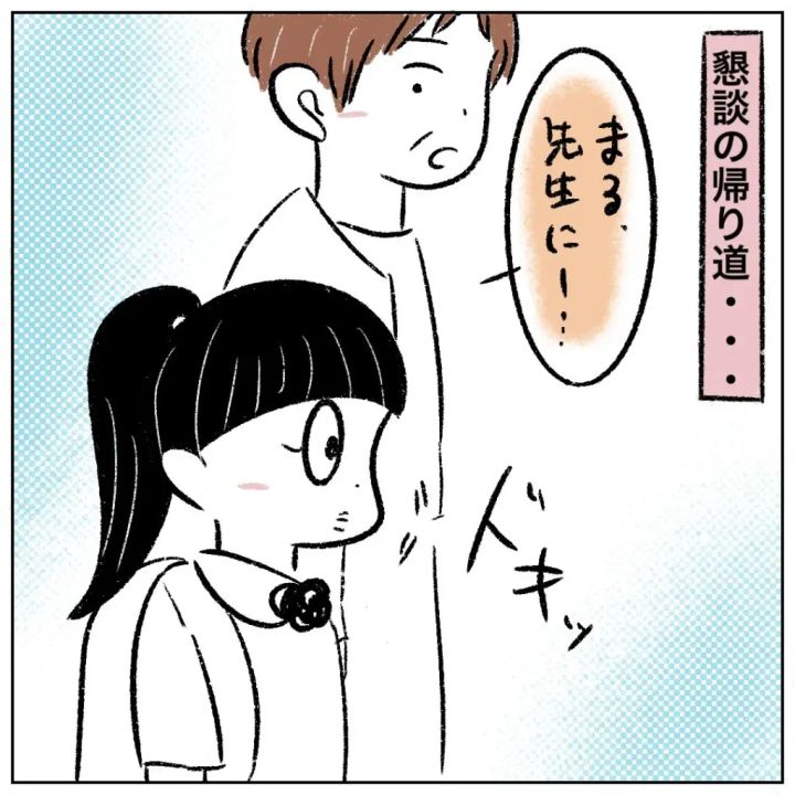 性根先生との懇談会の帰り道。まるさんはお母さんに、「まる、先生に・・・」と突然言われ、ドキッとしました。