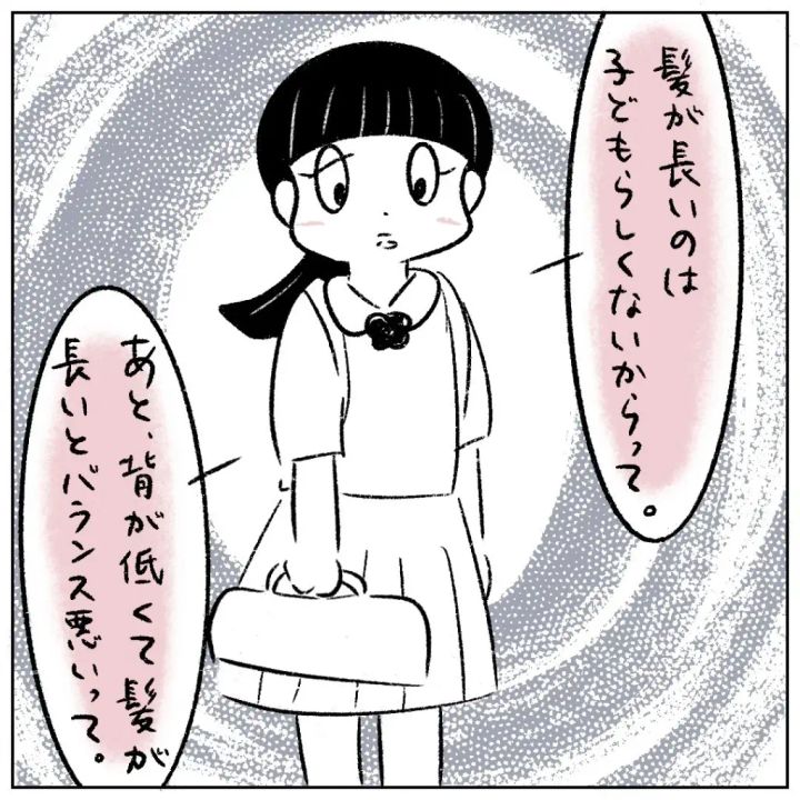 「髪が長いのは子どもらしくないからって。あと、背が低くて髪が長いとバランス悪いって」