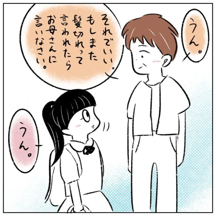 するとお母さんは、「うん。それでいい。もしまた髪切れって言われたらお母さんに言いなさい」