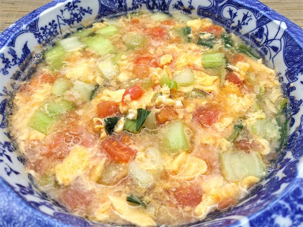 脇屋シェフはYouTubeで料理を紹介するときに、必ず料理の中国名を教えてくれます。このスープは「蕃茄蛋花湯」という名前で、蕃茄はトマト、蛋花は玉子の花を咲かせること、湯はスープのことですので、文字通りトマトと玉子のスープということになります。中華料理の名前は直接的に食材を表す言葉や花や景色に例えた言葉など様々ですので、料理名だけで完成形を想像しようとするとなかなか当たりません。中華街で漢字だけしか書かれていないメニューに出くわすと緊張するのはわたしだけではないと思うのですが、いかがでしょう?