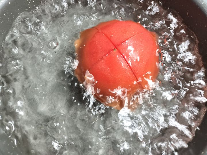 1. トマトは湯剥きして、1cm角程度に切ります。