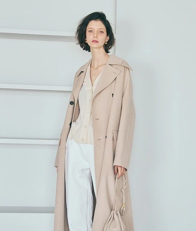 「飾り方で差が出る」ベーシックなベージュのトレンチ