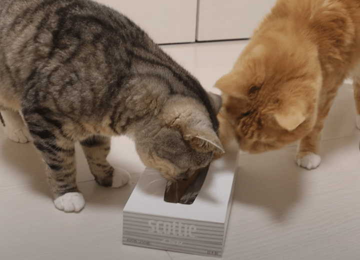 3. 猫さん大興奮! 箱の中のおやつ、取れる? まかせろ!